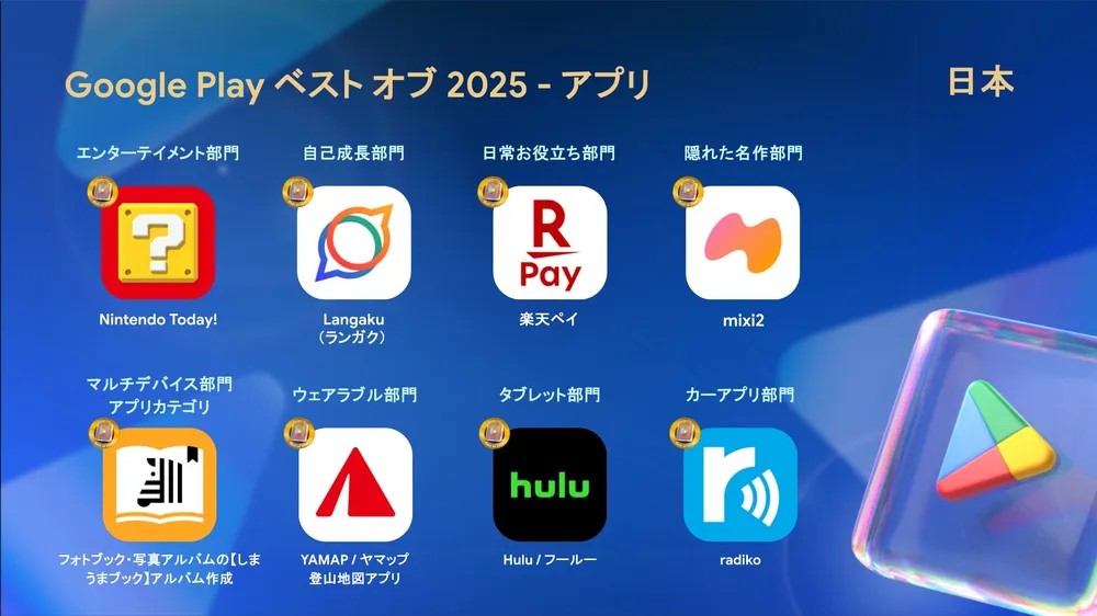 • 「Google Play ベスト オブ 2024」発表、「マンガワン」と「学マス」が受賞