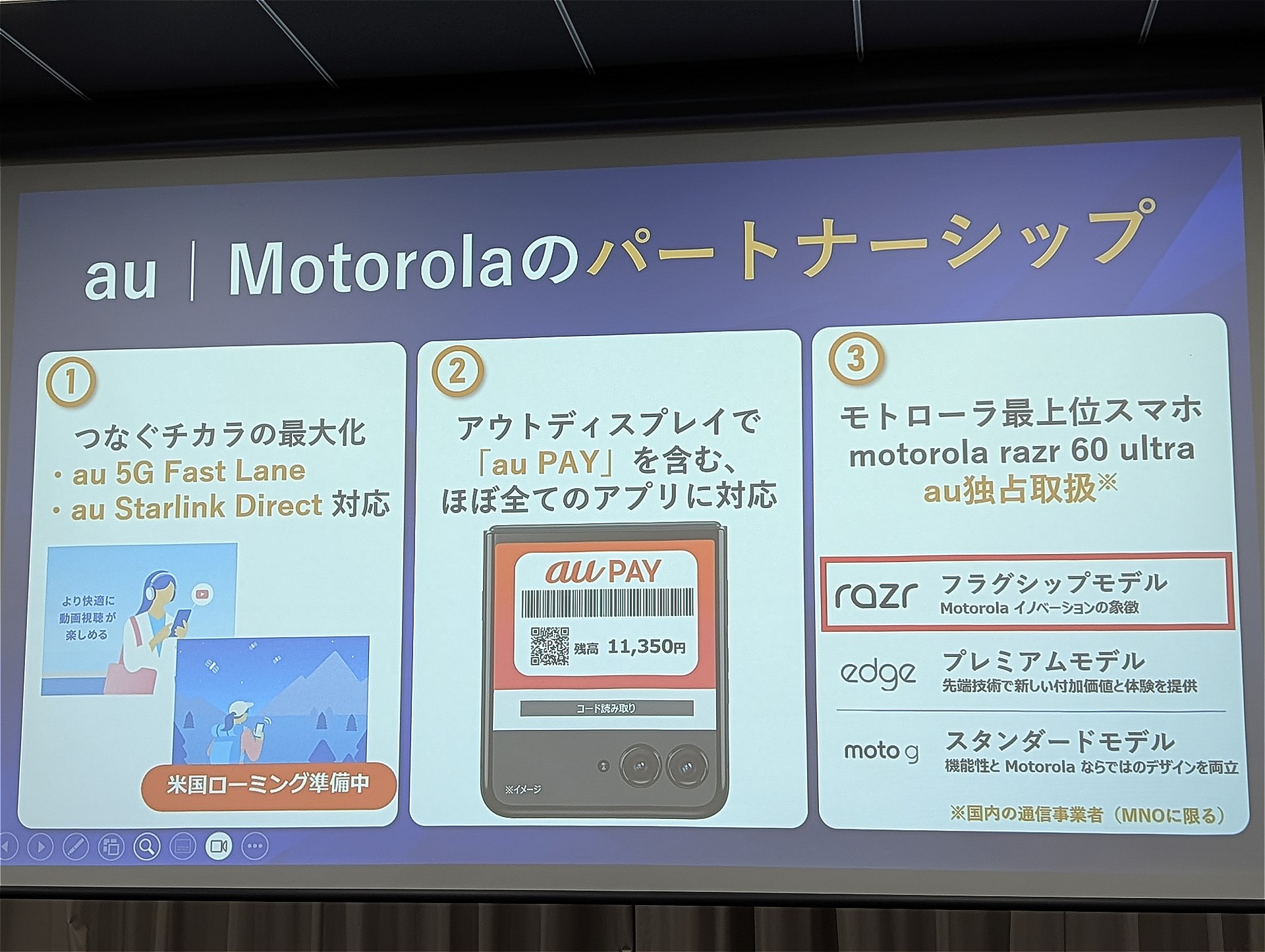 auから「motorola razr 60 ultra」を12月12日発売、auでは13年ぶりのモトローラスマホ(6/27)