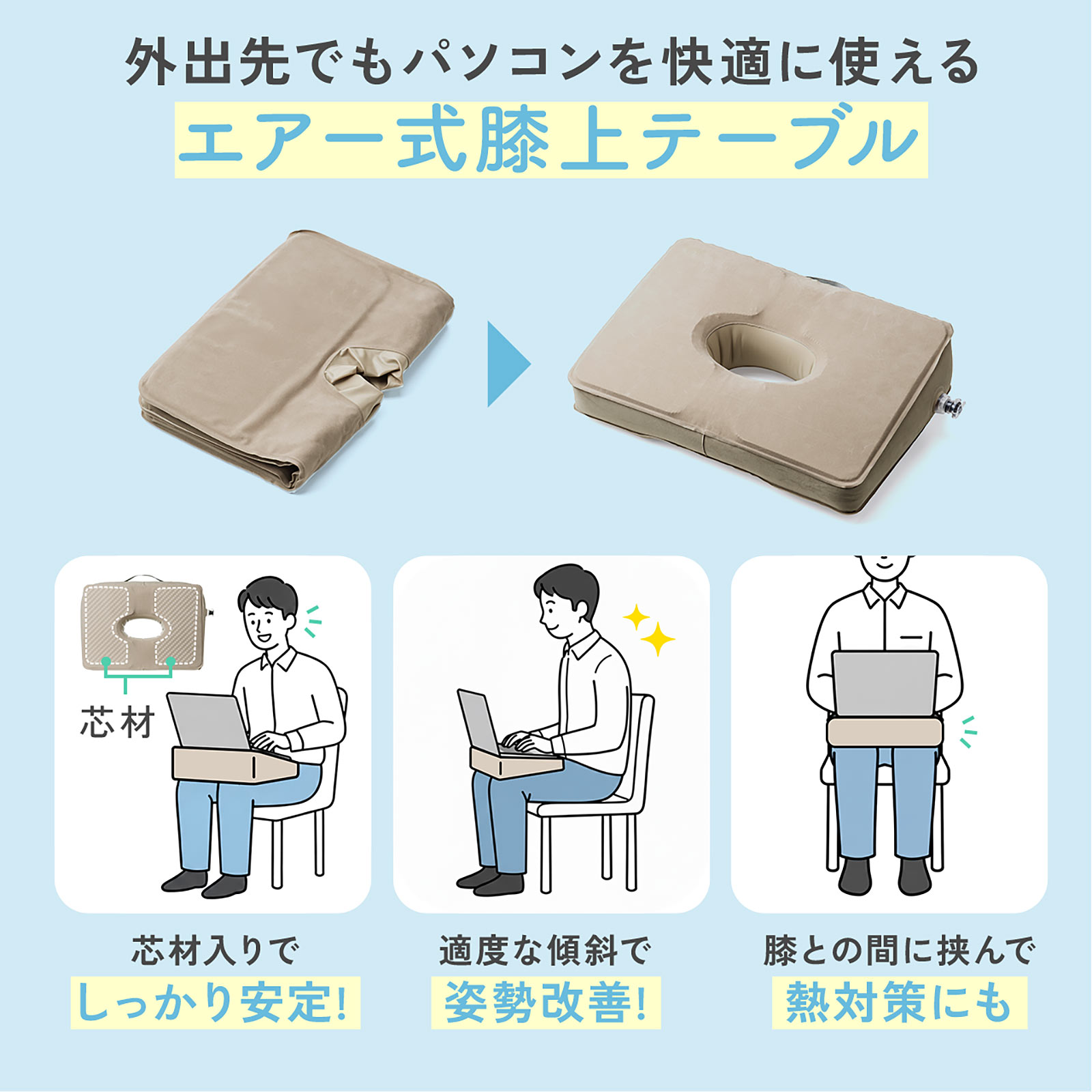 空気で膨らむ「エアー式膝上テーブル」が登場、重さ300g(15/18)