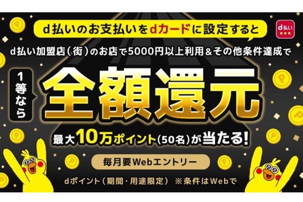 d払い/dポイントで12月からはじまるキャンペーン、ビックカメラやノジマ、エディオンなどで還元