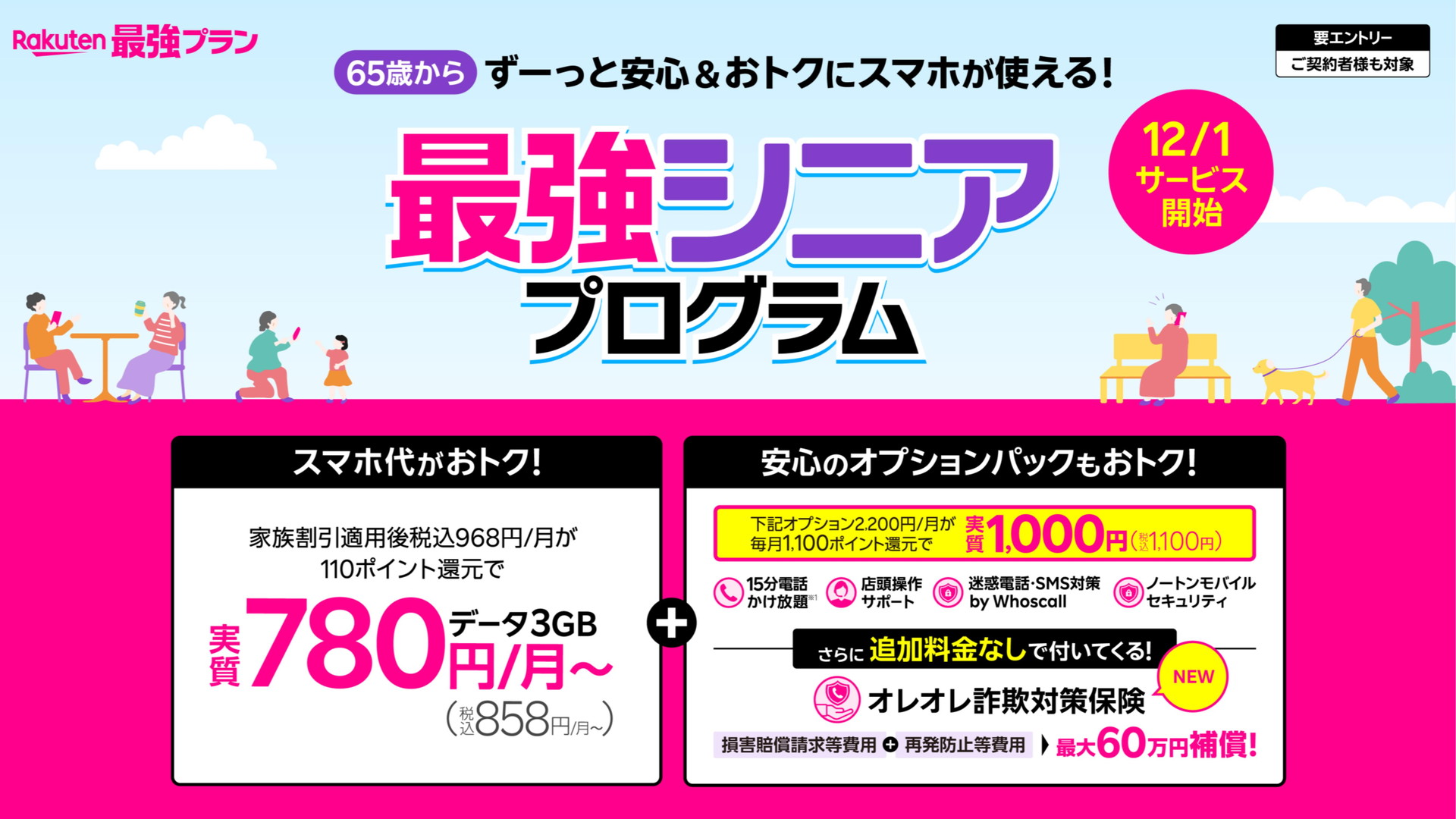 楽天モバイル、「オレオレ詐欺対策保険」を「最強シニアプログラム」に無償付帯 通信キャリア初の取り組み(9/15)