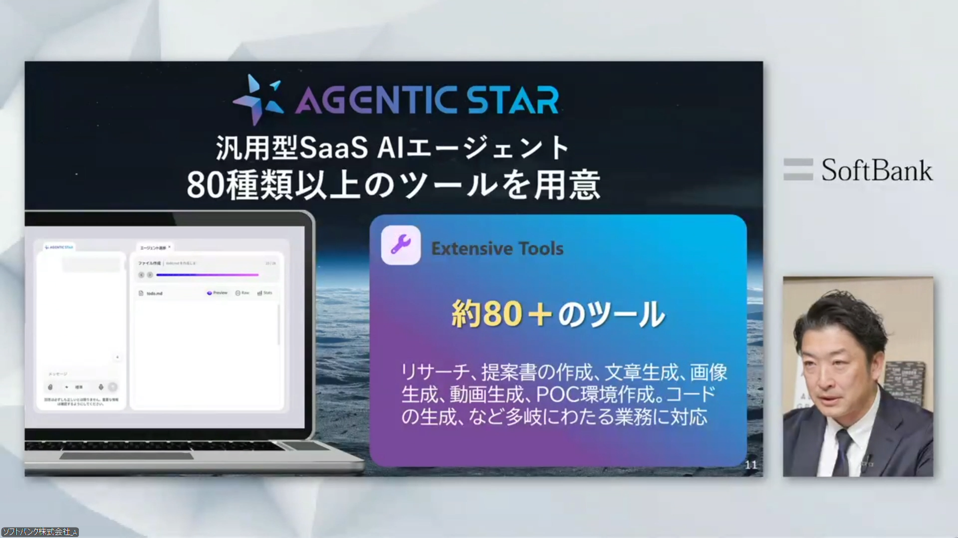 ソフトバンク、自律型AIエージェント基盤「AGENTIC STAR」提供開始 SaaSで業務自動化(8/19)