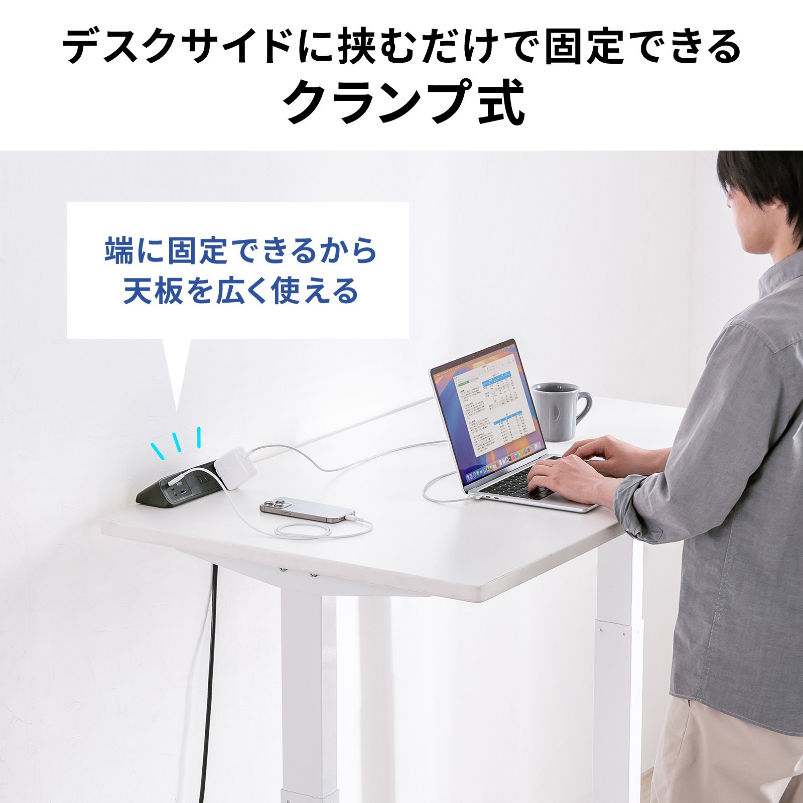 サンワサプライ、クランプ固定式タップを発売 1万4300円(4/13)