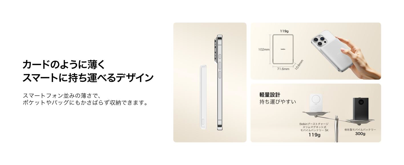 ベルキン、薄さ10.6mmの「薄型マグネット式モバイルバッテリー5K」発売 4590円(3/6)