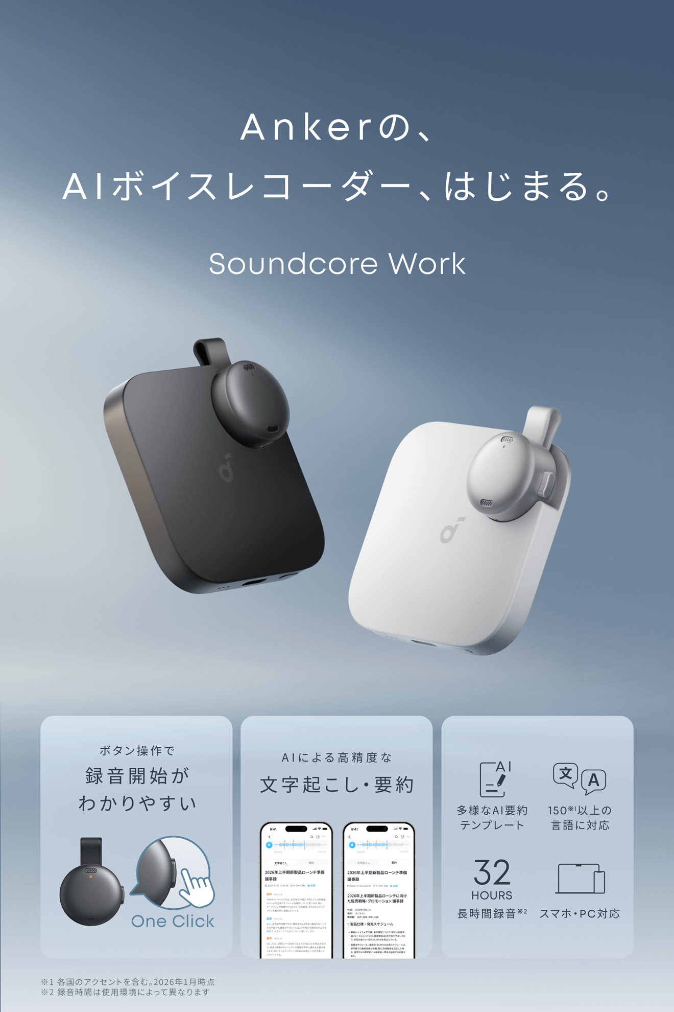 AnkerからAIボイスレコーダー「Soundcore Work」が発売、世界最小でAI文字起こしや要約(8/16)