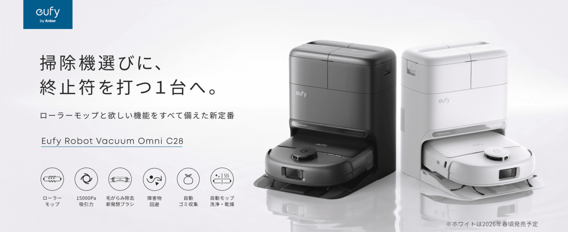 • Ankerからロボット掃除機「Eufy Robot Vacuum Omni C28」が登場、10万円で買えるフルスペック掃除機