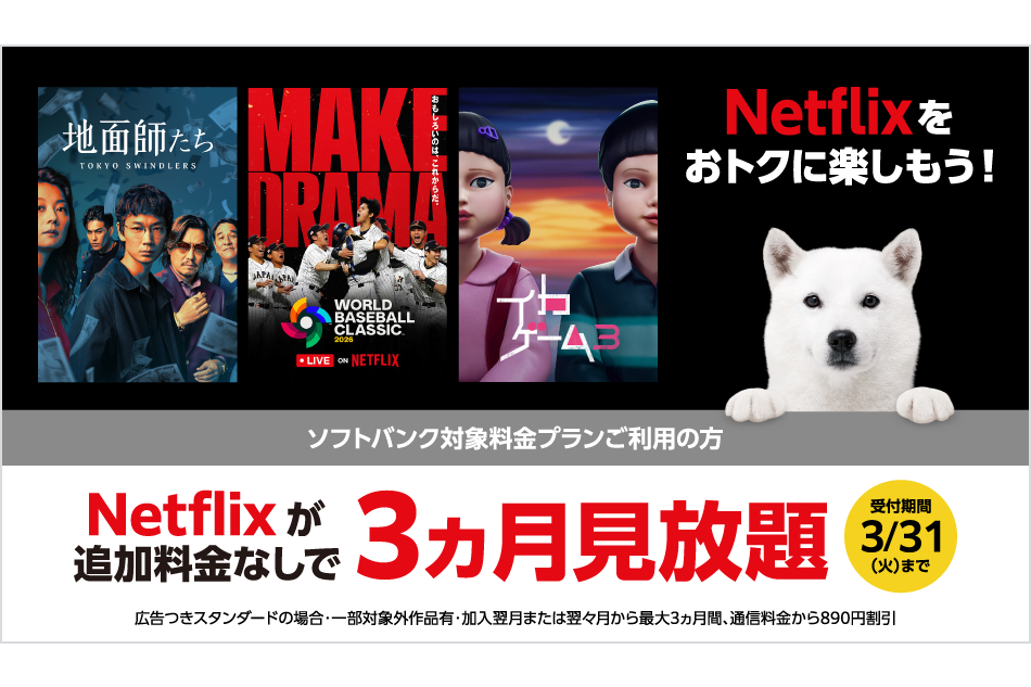 ソフトバンク、Netflix「広告つきスタンダード」3カ月間無料に 2月2日~3月31日