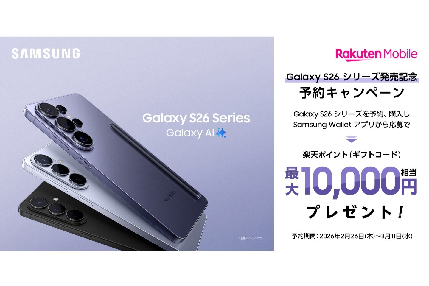 Galaxy S26/S26+/S26 Ultra、楽天モバイルから3月12日発売