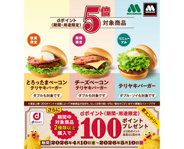 モスバーガーで「dポイント」5倍、テリヤキバーガーなど対象