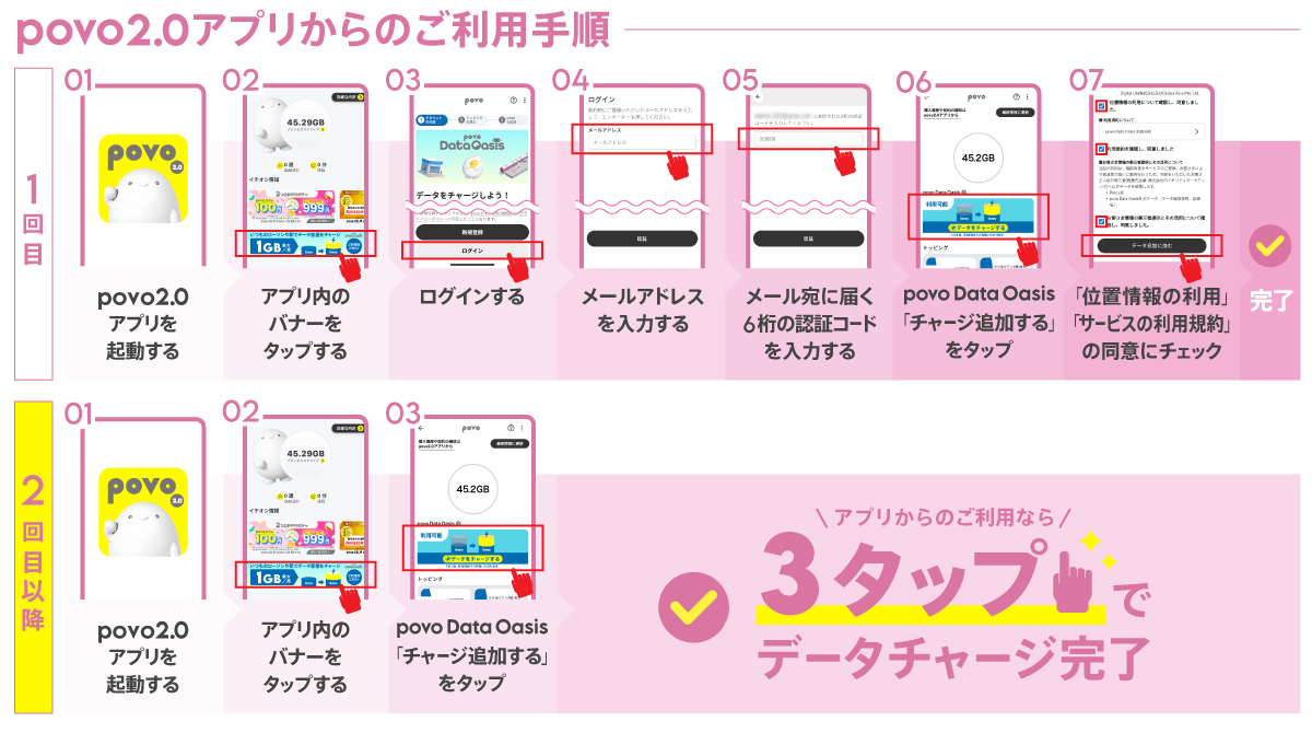 ローソンでギガもらえる「povo Data Oasis」、3タップに簡略化