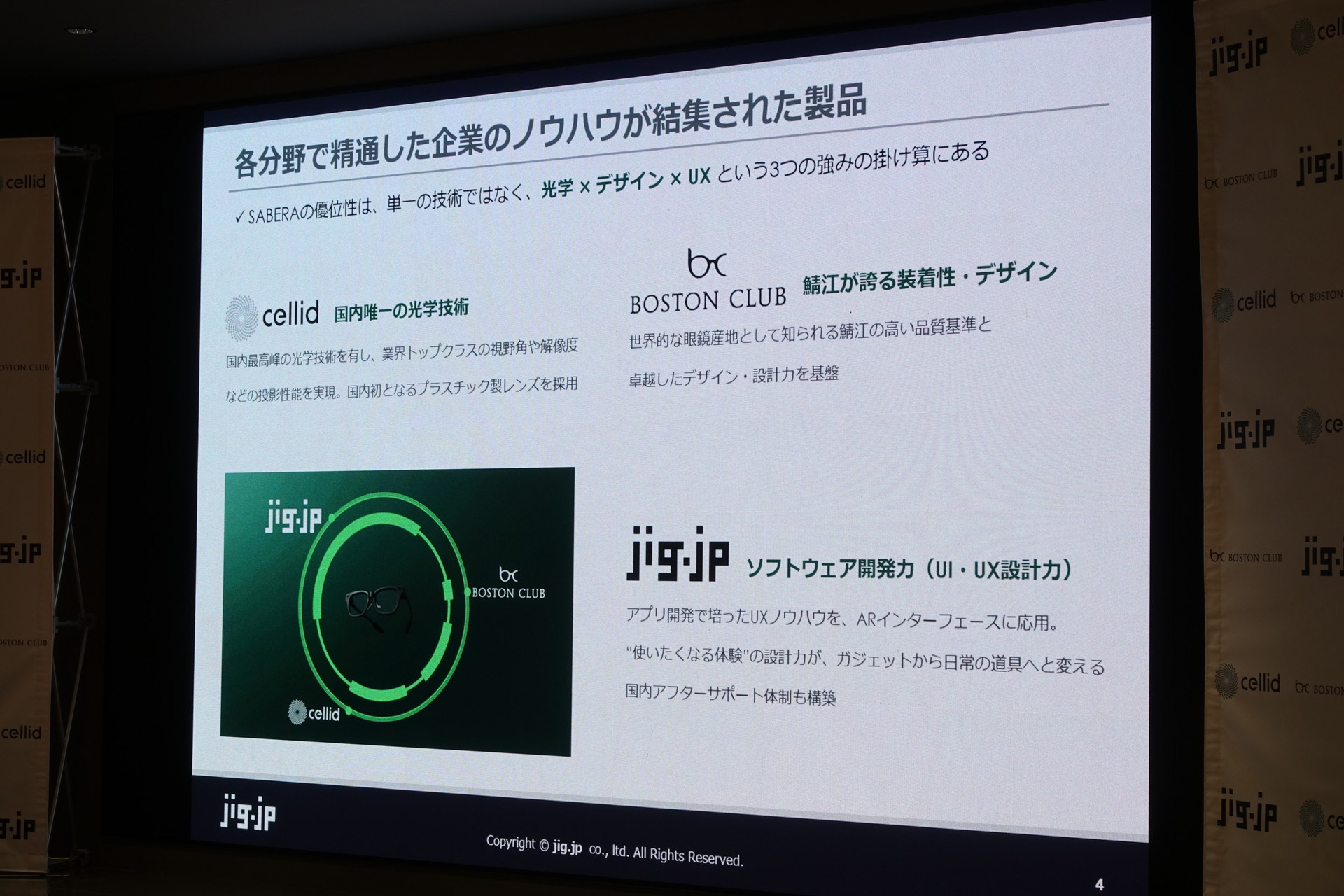 • jig.jpのARグラスは「SABERA(サベラ)」、今春クラファンで先行販売