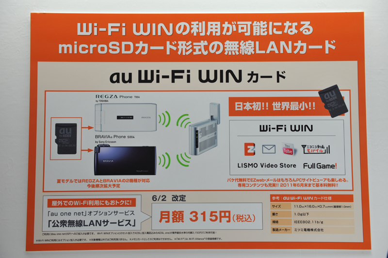 au、microSDカード型の「au Wi-Fi WINカード」