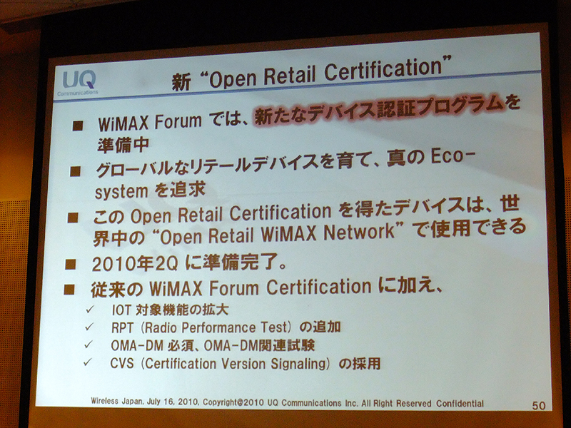 UQ渡辺氏が“インターネット的”なWiMAXを紹介、WiMAX2にも言及