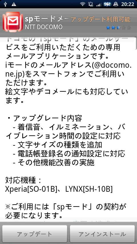 ドコモのAndroid向けspモードメールアプリがバージョンアップ