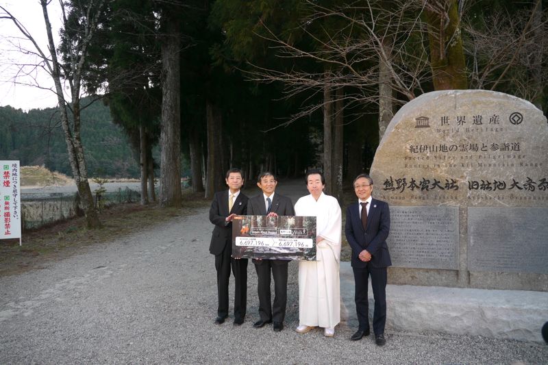 auが熊野古道Walkの寄付金贈呈、世界遺産の補修に貢献