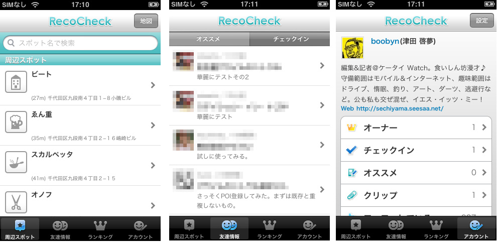 リクルートがソーシャル位置情報サービス参入、iPhoneアプリ「RecoCheck」