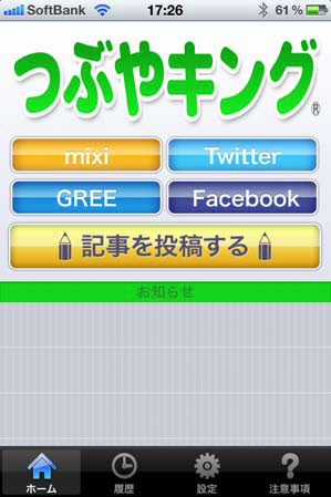 Twitterやmixiなど一括管理できるiPhoneアプリ「つぶやキング」