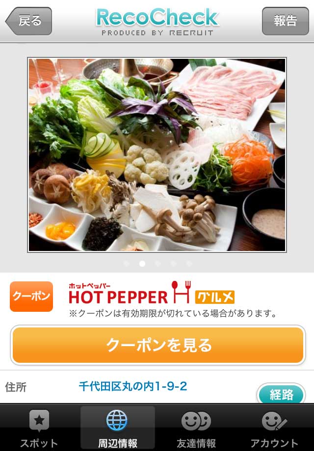 位置アプリ「RecoCheck」、リクルートのクーポン表示に対応