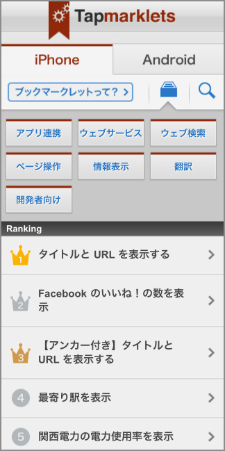 フェンリル、スマートフォン向けブックマークレットの紹介サイト