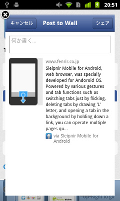 Facebook連携、「Sleipnir Mobile for Android 1.2」公開