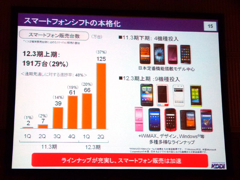 KDDI決算、スマートフォン販売数66万台に「満足のいく内容」