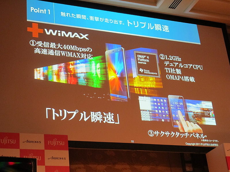 富士通東芝のau向け発表会、「ARROWS ES IS12F」披露
