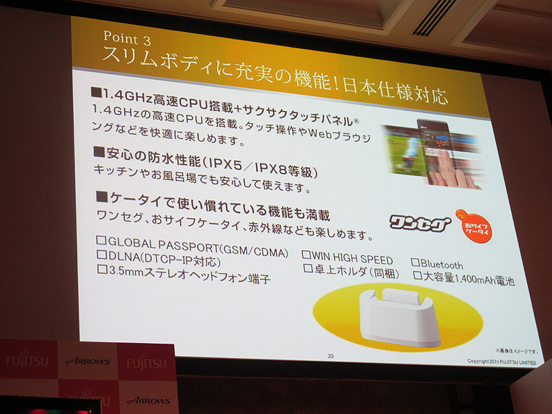 富士通東芝のau向け発表会、「ARROWS ES IS12F」披露