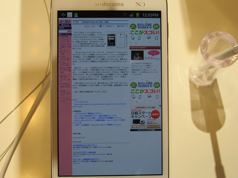 ドコモ、「GALAXY Note SC-05D」発表