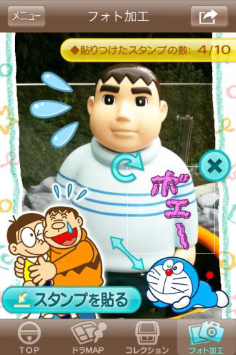 場所によってアイテムが変わる、「ドラえもん」の写真加工アプリ