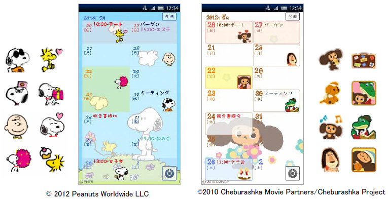 スヌーピーやチェブラーシカなど、「ジョルテ」対応コンテンツ