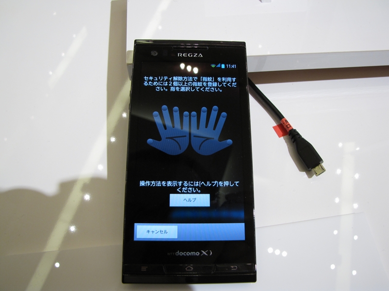 NOTTVとXi対応、スイッチ付き指紋センサー「REGZA Phone T-02D」