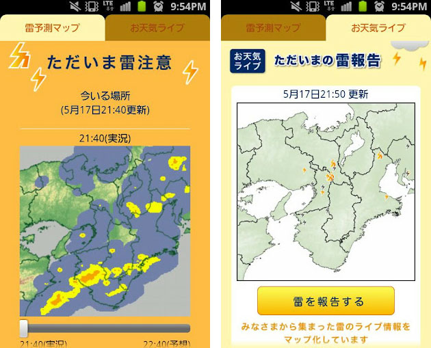 雷雲接近を伝えるAndroidアプリ「雷アラートPRO」