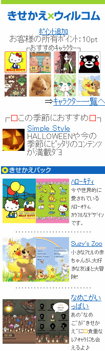 きせかえコンテンツ配信「きせかえ×ウィルコム」オープン