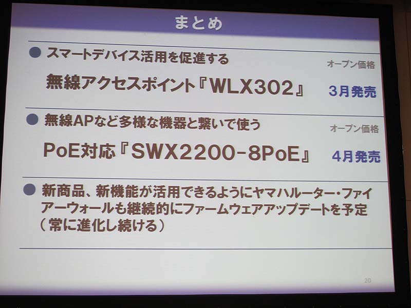 ヤマハ、スマホ時代に向けたMDM付き無線LANアクセスポイント