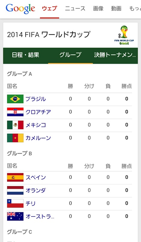 試合日程や速報を表示、Google検索がワールドカップ仕様に