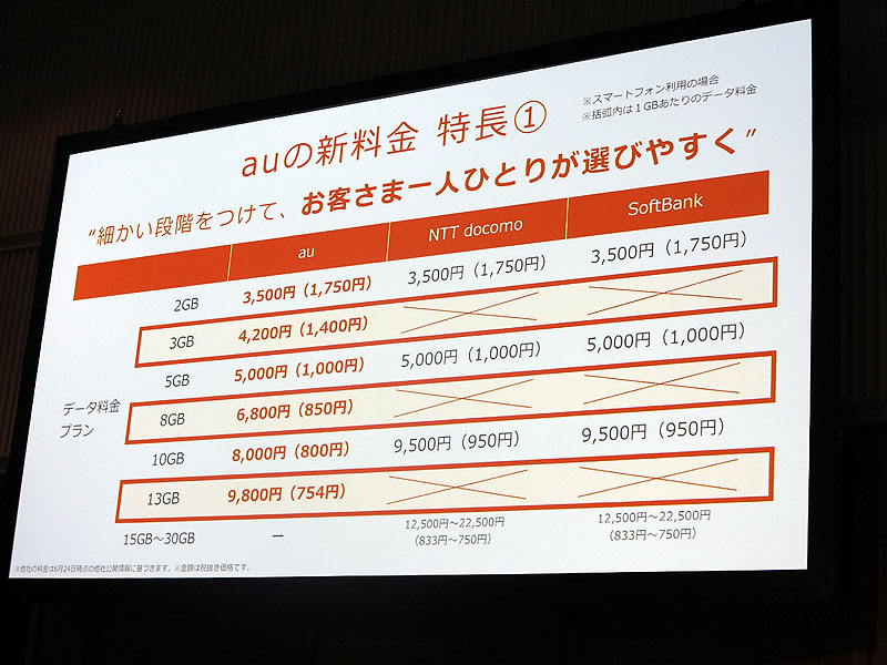 auの新料金、5GB以上のプランがお得になるキャンペーン