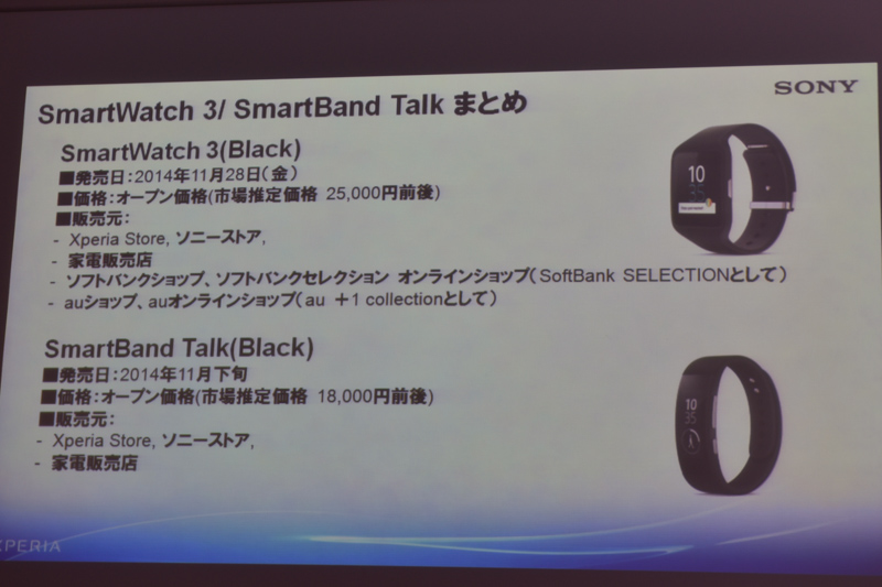 ソニー「SmartWatch 3」がAndroid Wearとして登場、通話対応の「SmartBand Talk」も【更新】