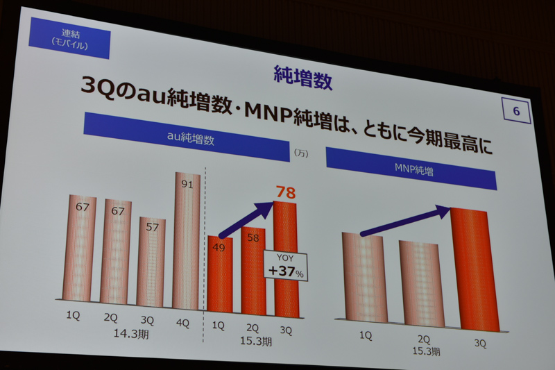 KDDI第3四半期決算は増収増益、2期連続の2桁成長に自信(5/25)