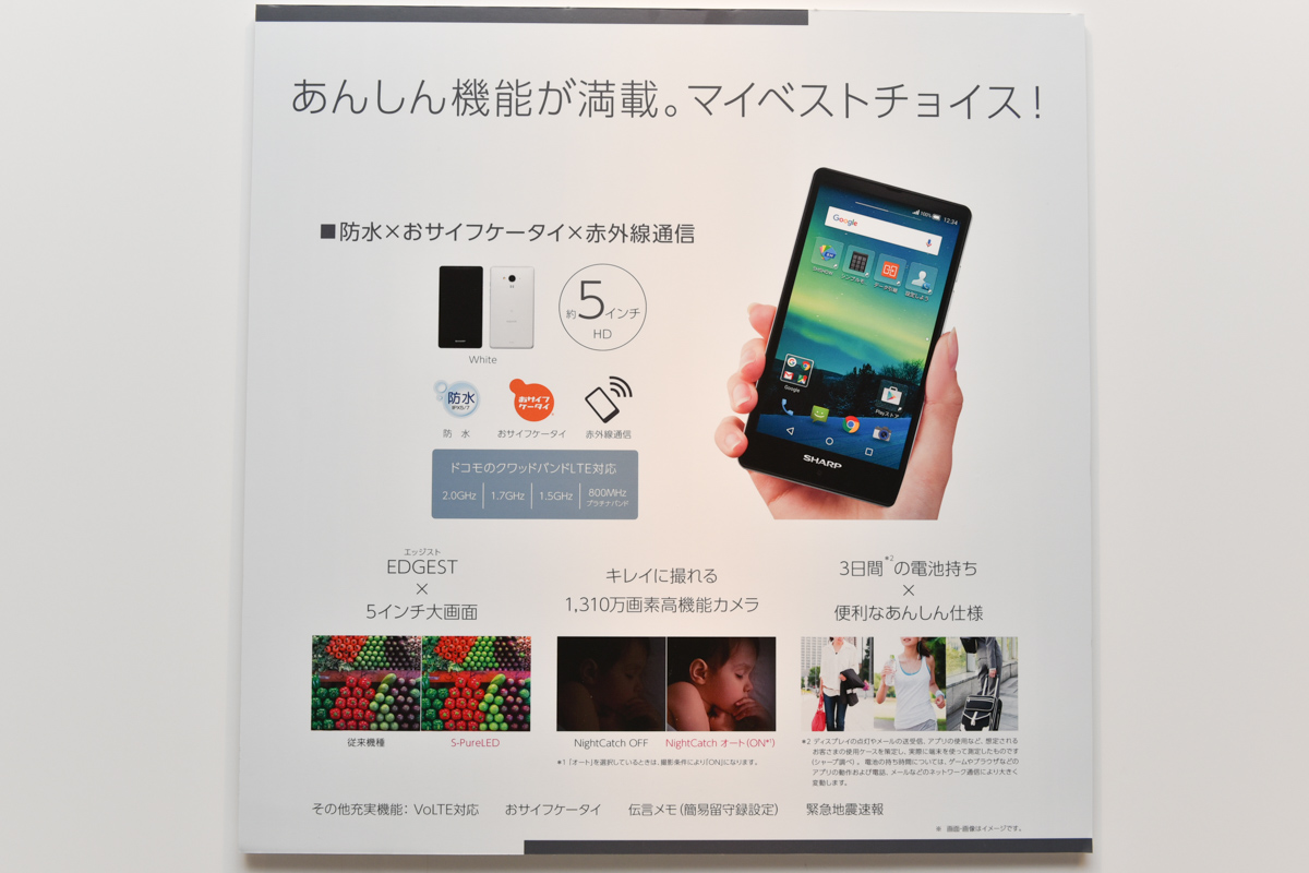 • シャープ、防水・おサイフ対応で狭額縁のSIMフリー「AQUOS SH-M02」