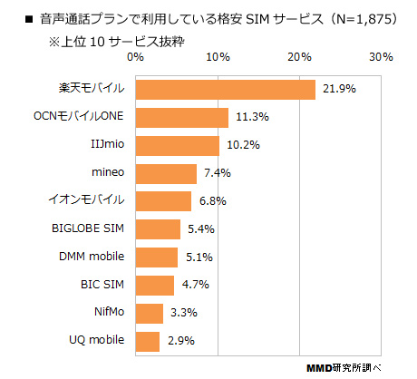 音声通話SIMは「楽天モバイル」、データSIMは「OCN」が最多~格安SIM利用動向(2/5)