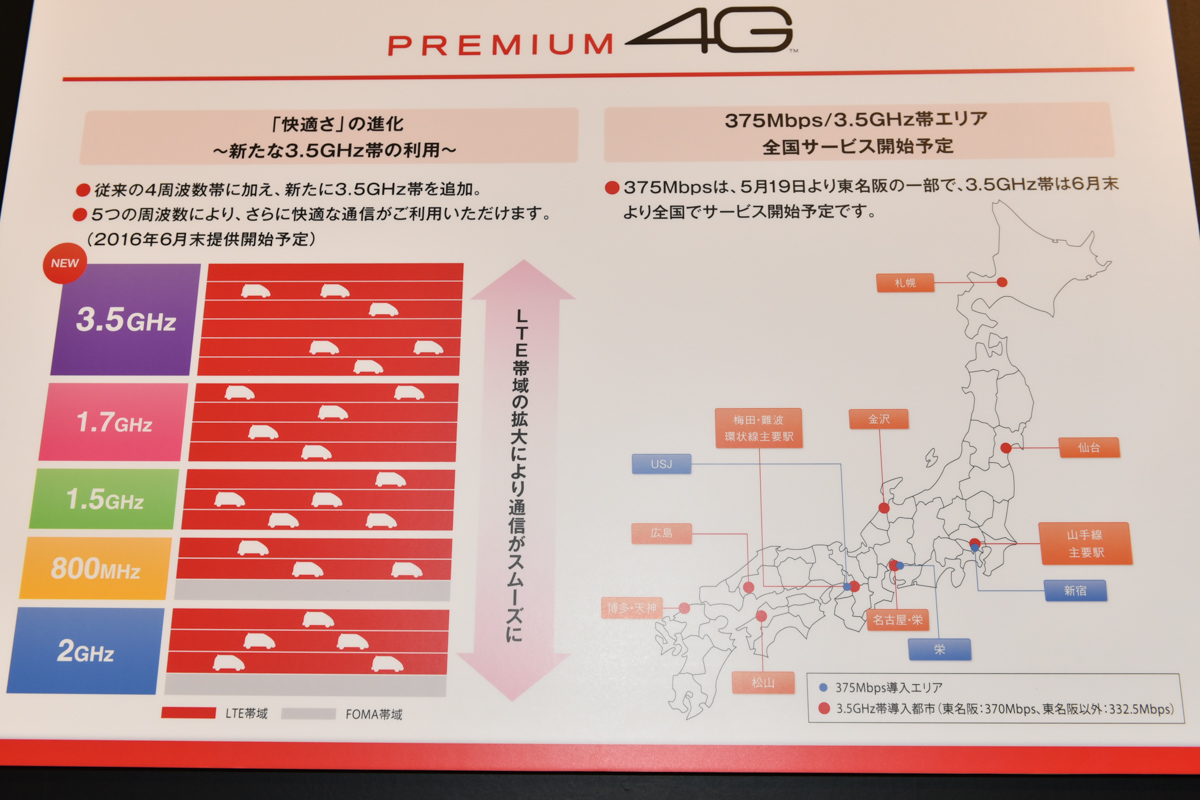 • ドコモが下り375Mbpsを6月開始、3.5GHz帯のサービスも【更新】