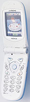 | ノキア製のデジカメ内蔵折りたたみ型液晶。閉じたまま時刻や着信を確認できるおしらせウィンドウを搭載。メニューはテキストメニューだが、ボタンひとつで操作ガイドを表示でき、マニュアルを見る必要はあまりない。液晶は最近のTFT/TFDに比べてやや暗め。 |