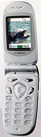 | デジカメ内蔵の三洋電機製折りたたみ型端末。撮影画像を用意されたフレームやスタンプ、文字などで加工する機能を備える。閉じたままで時刻や着信が確認できるおしらせウィンドウ搭載。TFTやTFD液晶に比べると、サイドライト式の反射型液晶は少々暗め。 |