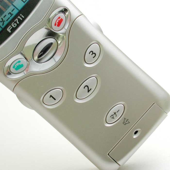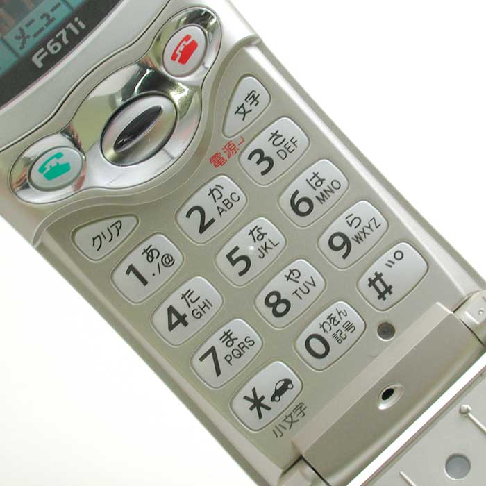 前置きが長くなりましたが、F671iは音声読み上げ機能が搭載され、発売以来売れ筋ランキングでも5位以内を維持している人気端末。文字も大きいし(小さくもできるが)ボタンも大きめ。ボタンは携帯電話としては、“押した感”もある方だと思う。iアプリは対応していないけれども、これから携帯電話をはじめて使うという人に大事なのはまず電話として使いやすいこと、あとメールが使いやすければ、というところだと思うので、その点、F671iは多機能な端末よりやはりわかりやすい。ボタンも整理されて必要以上に多くなく、よくかける人にはフリップ外側の専用ボタンひとつでかかるというわかりやすさは大事だ。また、高齢者はマナーボタンも普通の端末では兼用なので、わたしの知ってる範囲では利用している人が少ないのだけれど、F671iのように外側に専用ボタンがあれば、ちゃんと利用できると思う。