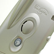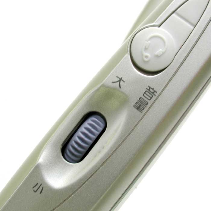 背面のボイスボタン。待受時に押すと時刻を読み上げる