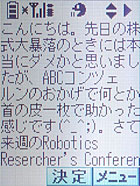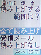 受信メールを読み上げるときだが、「(T_T)」を「シクシク」と読み上げるなど、顔文字にも対応している。新聞のような文体ならばまず読み上げ可能で、某ニュースサイトの記事をメールで送って読ませてみたが、人名以外に間違いはなかった。「MAIL」くらいの短い英単語ならばいけるが、長い単語はダメだ(ちなみに他の携帯電話メーカーである「Panasonic」「SONY」「SHARP」は読めた)。