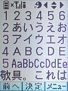 ボタン配置。「っ」の入力時には「つ」+「*(小文字ボタン)」という方式。カーソルは上下のみ。受話・終話ボタンがソフトキーとなって左右キーになったりする