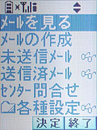メールのメニューは待受からカーソル上で呼び出せる。メガネマークは小さなフォントのしるし