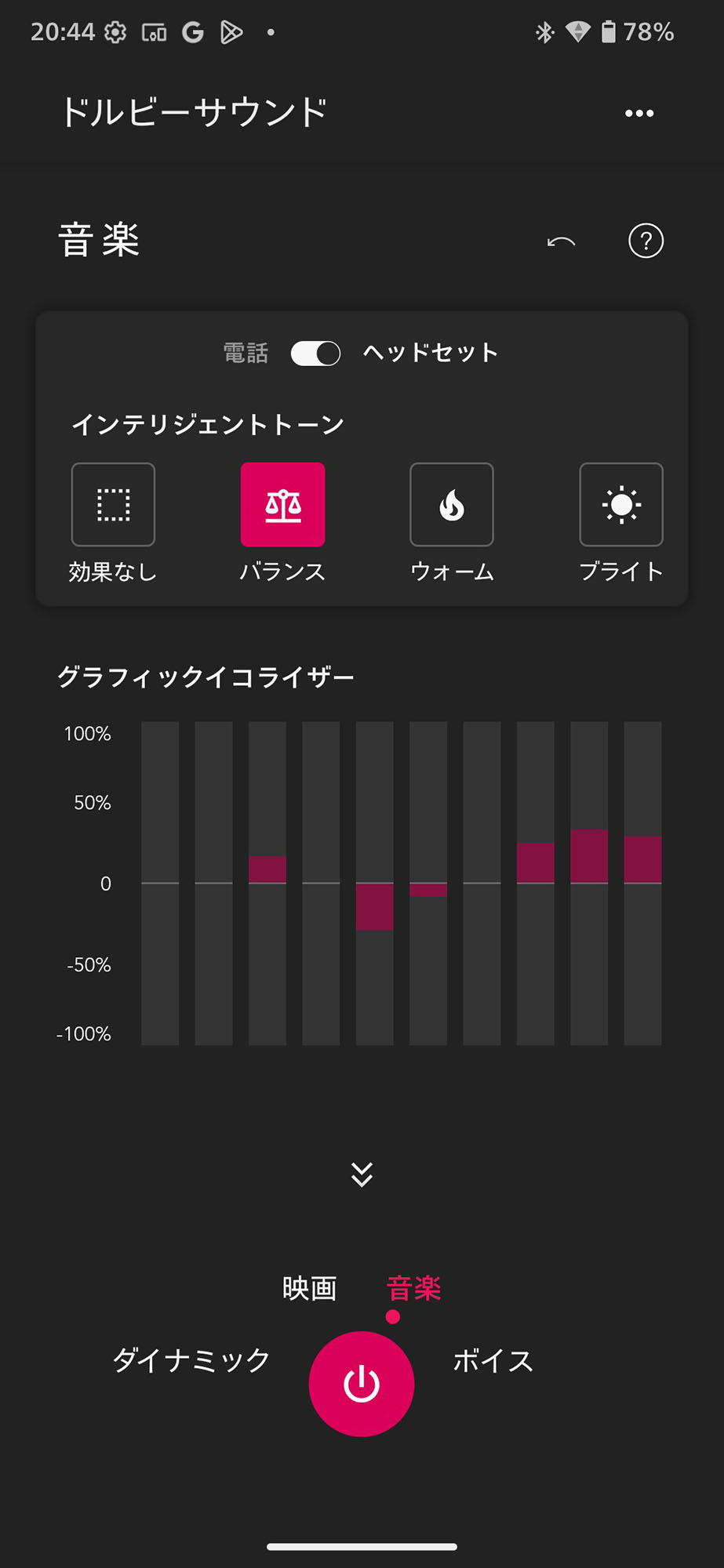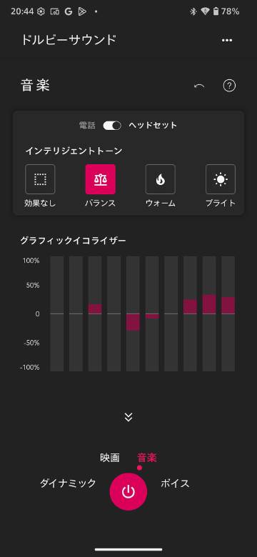 サウンドエフェクトでは、ドルビーサウンドに切り替えもできる。「8Way Audio」とはまた全然違うアルゴリズムで音を広げるが、こちらは低域の表現が増すので、これも試してみるとおもしろいだろう。