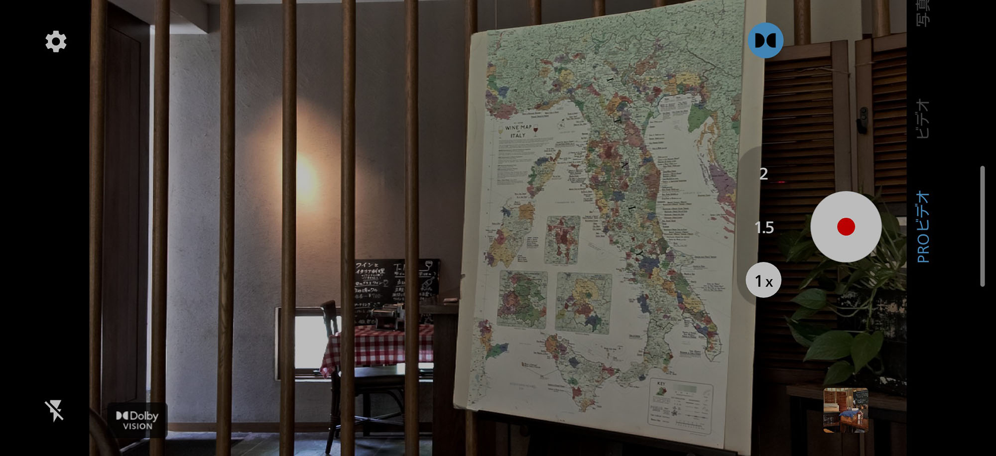 動画撮影では、PROビデオモードにするとDolby VisionでのHDR撮影が可能になる。当然ディスプレイもDolby Vision対応なので、撮影中もHDR表示で確認できる。まさに撮影しているときに、完成品を見ているわけだ。これはまさに、ディスプレイが現実を超えてきた瞬間である。